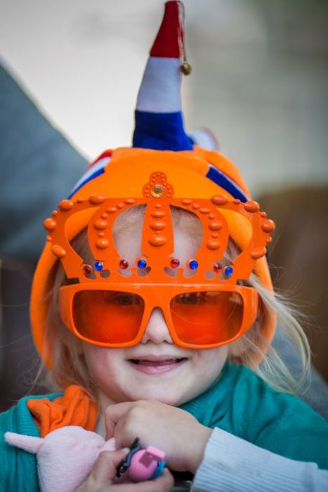 3 – Todos se vestem de laranja: o uso da cor laranja é uma forma de demonstrar orgulho da família real holandesa, os Orange-Nassau. Se você não se vestir dos pés à cabeça de laranja, você não está fazendo do jeito certo. Perucas e pinturas no rosto também valem – quanto mais excêntrico, melhor. Sim, você vai parecer uma pessoa louca – igual a todos os outros.
