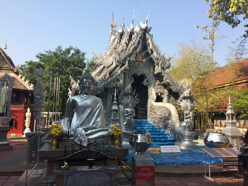 Esse é um dos templos pouco conhecidos pelos turistas, mas que vale a vista por ostentar o título de único Templo Prata da Tailândia. A construção é muito bonita por fora, mas como não é permitida a entrada de mulheres no interior, não sei dizer sobre o altar.