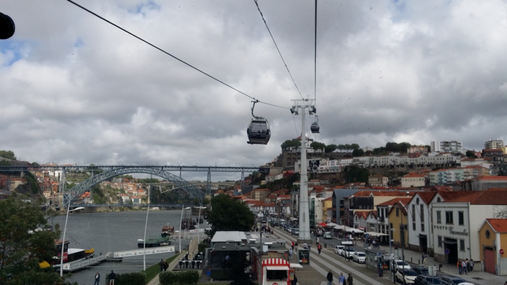 Muitas pessoas não gostam de altura, eu não tenho esse problema e um dos passeios que eu mais curto (dentre muitos) é o de teleférico. Felizmente, Portugal tem vários teleféricos e eu fui na maioria deles em Lisboa, Guimarães e Vila Nova de Gaia. Este último foi o que eu achei mais interessante, pois o visitante pode observar tanto o Porto quanto Vila Nova de Gaia de um ângulo diferente e belo. A viagem dura poucos minutos mas ao desembarcar na estação alta, o visitante tem algumas opções de passeios, eu escolhi atravessar a ponte D. Luís até o outro lado (Porto) a pé.