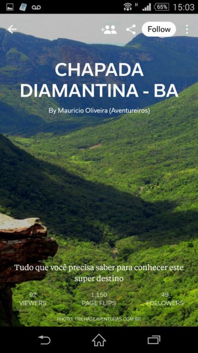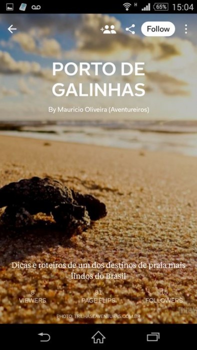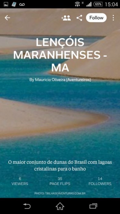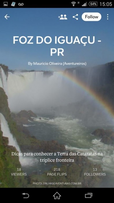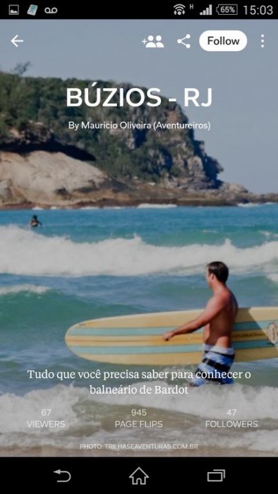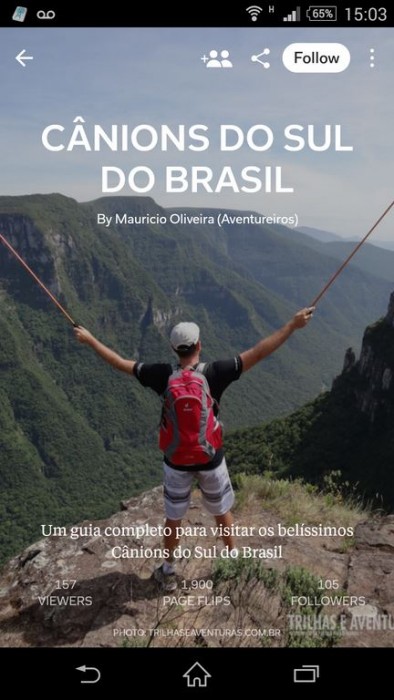 O sucesso foi tanto que chegamos a incríveis 5800 seguidores em uma semana. Utilizamos o aplicativo do Flipboard para fazer nossas revistas de viagem com os melhores posts de cada destino. Temos certeza que as 8 novas revistas vão agradar a todos os gostos. São elas: Cânions do Sul do Brasil, Búzios, Chapada Diamantina, Estrada Real, Porto de Galinhas, Abrolhos, Lençóis Maranhenses e Foz do Iguaçu.