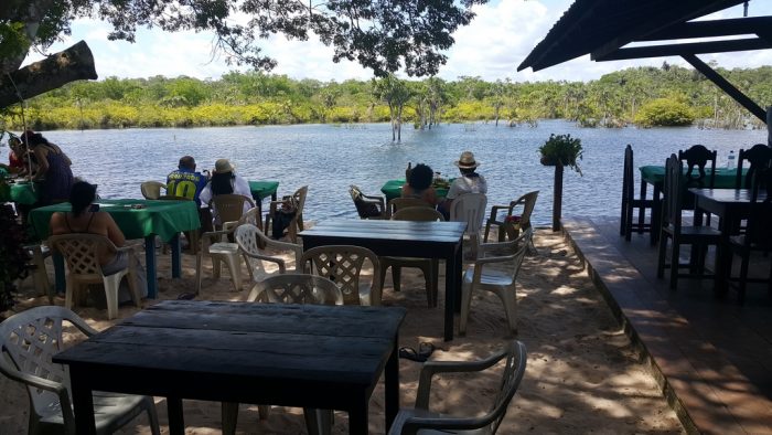 O barco encosta em um restaurante onde dá para almoçar e ficar ali curtindo a natureza, meditando ou mesmo tirando um cochilo nas redes.