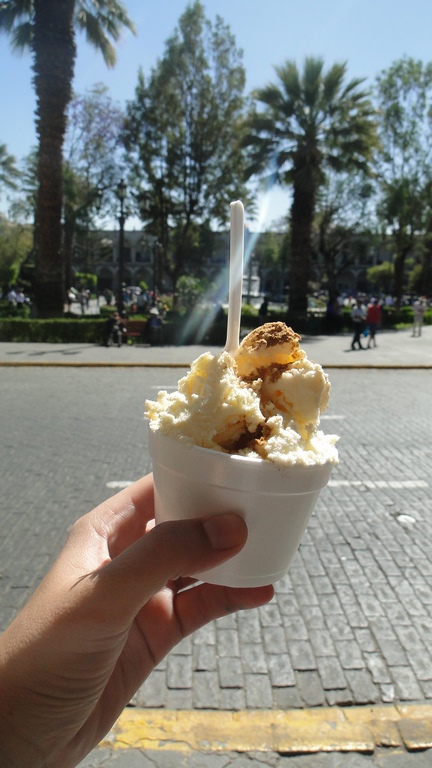 Plaza de Armas e o famoso Sorvete de Queijo. Tipico de Arequipa. Uma delicia!