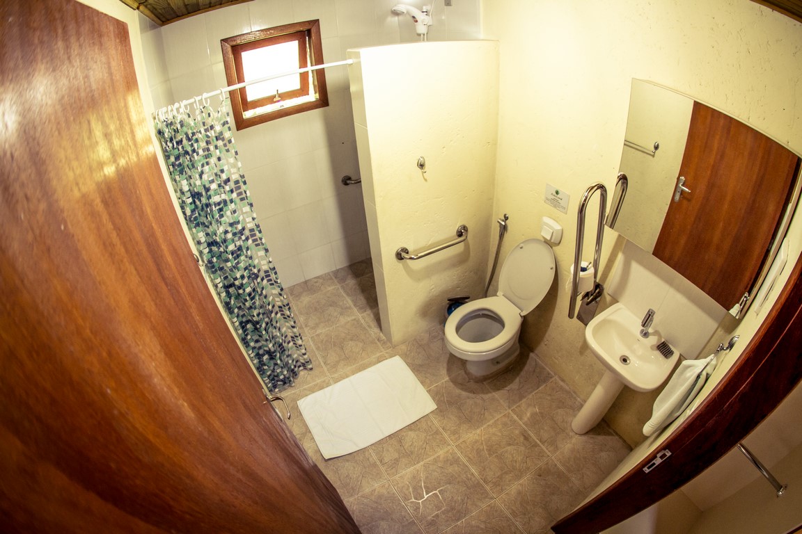 NOTA OBRIGATÓRIA sobre um chalé especialmente concebido para quem possui necessidades especiais também poder desfrutar do máximo conforto possível; este com portas e corredores mais largos, acesso facilitado, assim como todo o equipamento de apoio necessário.
