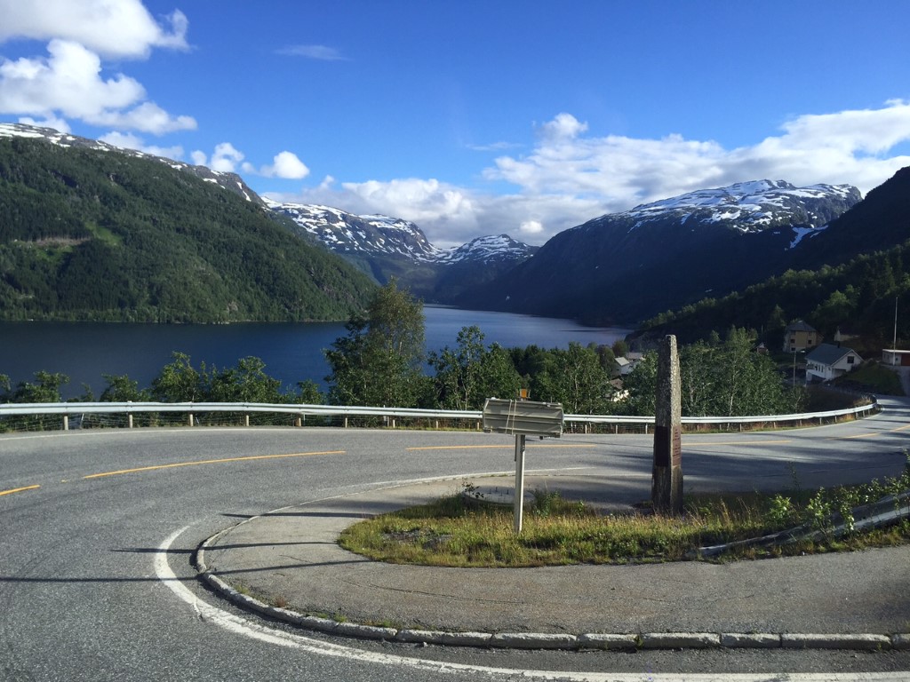 À medida que vc se aproxima do topo, é possível avistar o fiorde. Em algumas partes é impossível não parar pra apreciar a vista. A paisagem é sensacional!!!