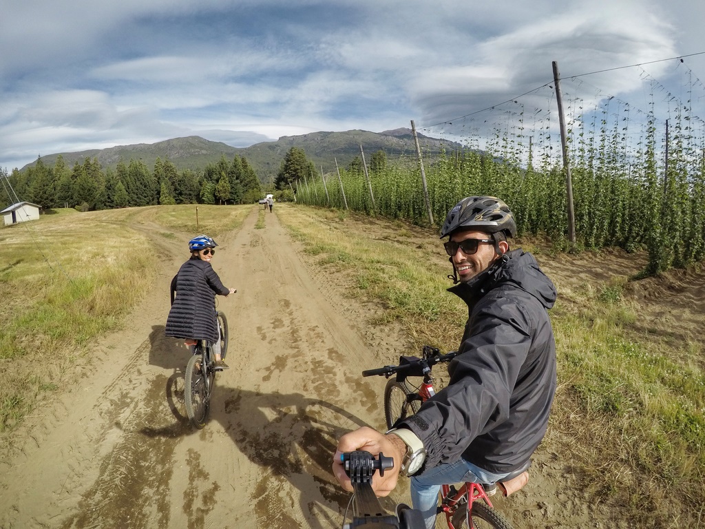 Para nossa próxima parada, voamos para El Bolsón e lá conhecemos um campo de lúpulo (Stela Artois, Hoegaarden, Leefe, etc) e os processos de colheita, em mais uma aula de produtos derivados. A Argentina, em função do clima, é pioneira na América do Sul em produzir a planta em grande escala.