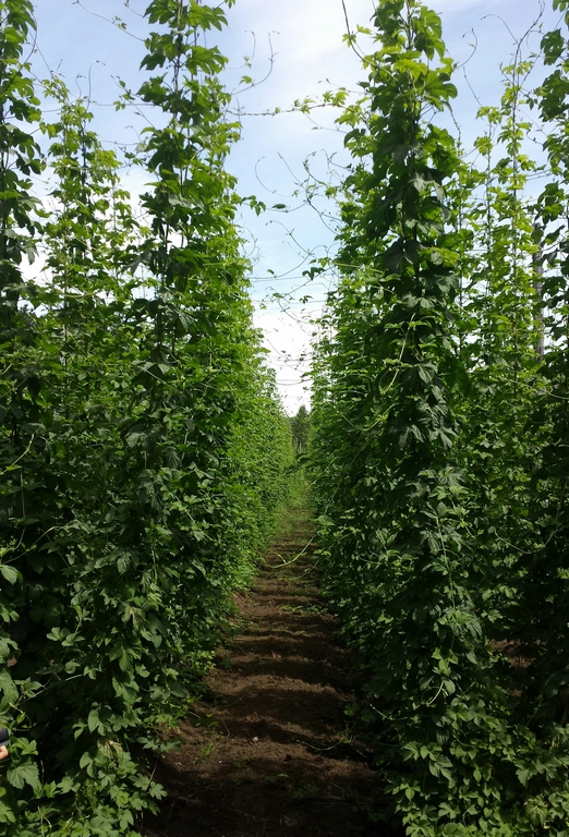 Após um almoço harmonizado, fizemos um passeio de bicicleta pelo campo de lúpulo e pudemos por em pratica algumas técnicas aprendidas sobre o processo de colheita, como a podagem manual da parte inferior das plantas buscando o desenvolvimento e fortalecimento desta.
