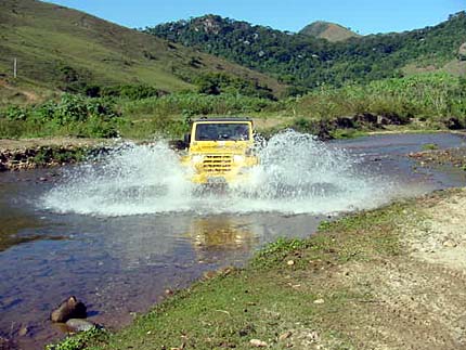 Para fechar o circuito deste roteiro resolvemos fazer uma trilha off-road pelas redondezas da cidade. Ao atravessar a parte baixa do Rio Boa Vista o meu jipe Troller, ano 2002, levantou certo volume de água formando uma verdadeira enxurrada. A cena parecia imagem de rallye, mas como nem tudo são flores, tivemos naquele momento a grande frustração da viagem. O Troller não conteve a quantidade de água e sofreu grande infiltração ocasionada pela má vedação nas portas. Resultado, parte da água infiltrada caiu sobre o equipamento fotográfico danificando lentes e flash, o que me gerou um prejuízo orçado em mais de três mil reais. Será que o Troller é realmente um campeão?