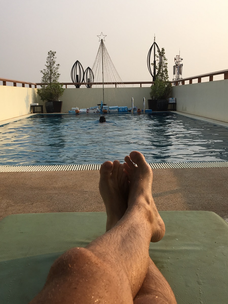 A nossa escolha onde ficar em Siam Reap foi pelo Cheathata Angkor Hotel e melhor não poderia ser. Além da maravilhosa localização (ao lado das principais atrações do centro da cidade), recebemos a partir da recepção uma atenção muito atenciosa e simpática dos funcionários: desde chá gelado e toalhas úmidas frescas a um upgrade de quarto onde, pasmem, haviam três camas de casal enormes, atendimento VIP no quarto, banheiro com banheira e sacada bastante espaçosa.