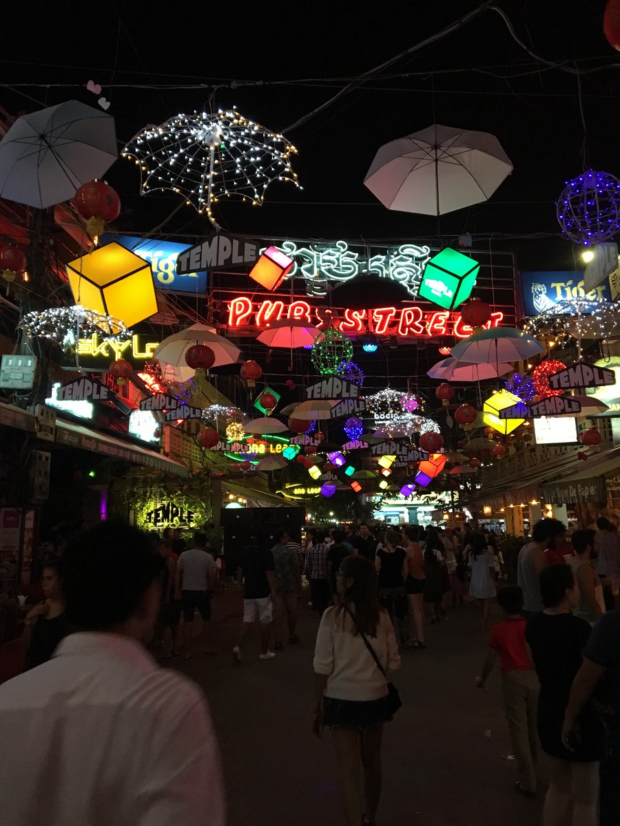 A cidade é frenética por conta da mistura de turistas, habitantes, comerciantes e gente que se diverte entre os pubs e o trânsito que envolve animais, tuk-tuks, carros e motocicletas. Mas a região mais movimentada fica na área de Phsar Chas, o Mercado Antigo, onde está localizada a famosa Pub Street.
