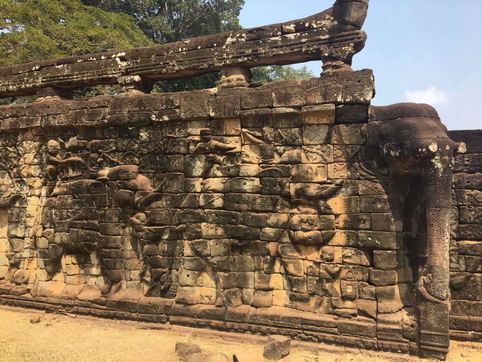 Além dos incríveis portões, como o Victory Gate, visitamos o Terrace of the Elephants, local utilizado pelo rei para ouvir queixas e problemas do povo, assim como para realização de audiências e cerimônias públicas – destacado pelas lindas esculturas de elefantes em suas paredes.