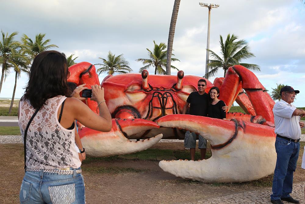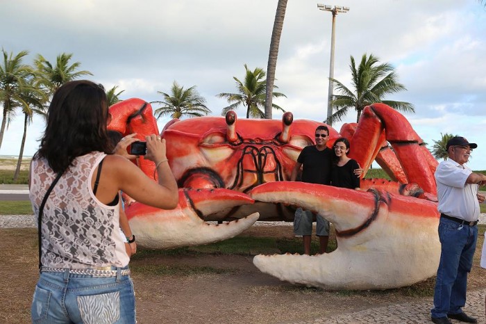 Deusa da Silva trouxe a família de Juazeiro/BA e enquanto todos estavam fazendo poses para a foto ela se encantava com o que via. “A cidade é muito linda gostei demais. O caranguejo é muito lindo, passei pela frente e disse que queria tirar foto aqui. É um atrativo a mais para Orla, já tiramos muitas fotos”.