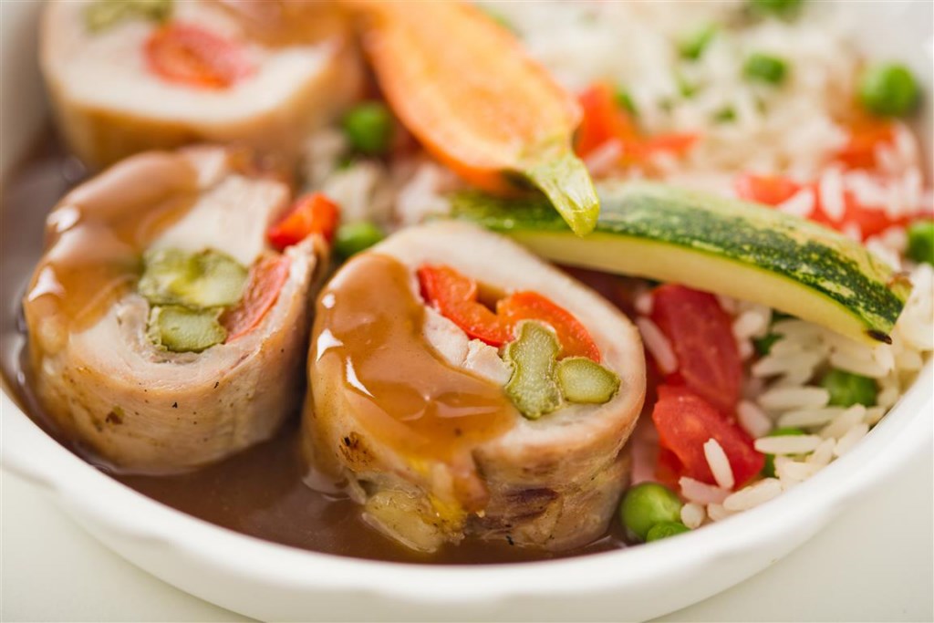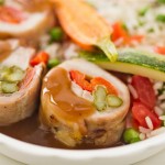 Balotine de frango com arroz e legumes