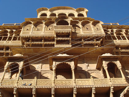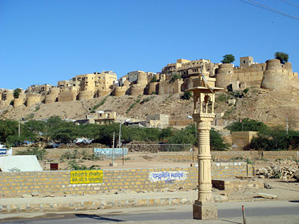 Chegamos a Jaisalmer, estado do Rajastão, no final da tarde. O tempo estava bom e a temperatura amena. Logo que chegamos, vimos o porquê da denominação – “Golden City”. Um castelo de areia gigantesco (com 80m de altura!) situado no morro “Trikuta” chama a atenção devido a sua presença única.