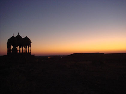 Uma outra atração imperdível é o antigo cemitério de Jaisalmer que detém uma beleza austera ao entardecer. Muitos turistas vão para lá no final da tarde para passear pelas pequenas fortificações esculturais e aproveitar o pôr-do-sol que é simplesmente indescritível.
