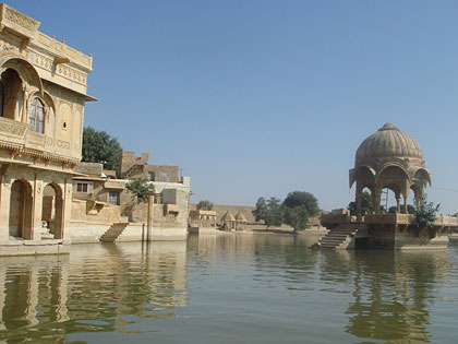 A próxima atração é o Rio Gadi Sagar que é “breathtaking” (…). Antigamente ele era usado como reservatório de água da cidade, mas hoje funciona como um centro turístico de recreação. O local é muito bonito e romântico. Há muitos templos e altares em volta do reservatório que fazem com que a paisagem se torne ainda mais bela.