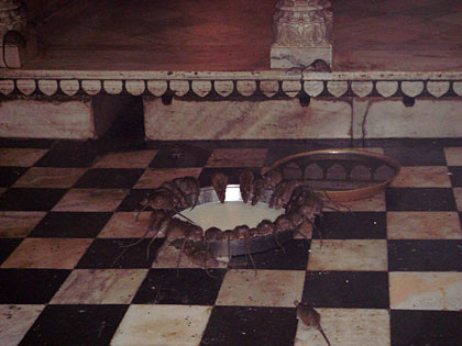 Após a visita ao expressivo forte, fomos ao Templo de Karni Mata que está a 30km ao sul de Bikaner e é um dos mais famosos da Índia, pois é onde peregrinos provenientes de todo o país adoram milhões de ratos sagrados. Para os indianos, estes são considerados sagrados, pois são encarnações da Deusa Durga.