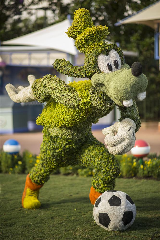 E, se no Brasil inteiro haverá festas e confraternização, nos parques Disney o clima de Copa já chegou. Desde março, os 32 países participantes do mundial estão retratados em topiaria exposta no parque Epcot, como parte do Internacional Flower & Garden, festival de jardins, flores e plantas realizado anualmente. Os visitantes podem interagir com uma topiaria animada defendendo o gol do Pateta.