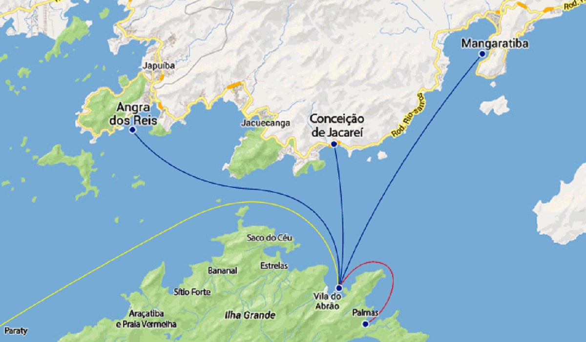 - Esta rota vai ao longo do canal, entre a Ilha Grande e o continente, a oscilação da embarcação é menor;