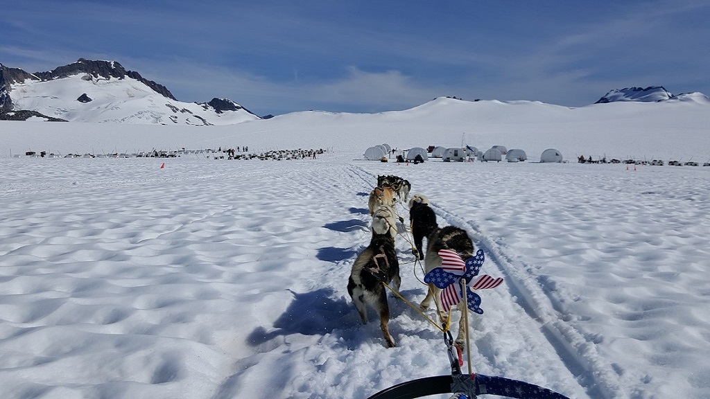 Esse foi sem sombra de dúvida o melhor passeio que fizemos na viagem e talvez um dos melhores da vida. Na parada que fizemos em Skagway, sobrevoamos as geleiras de helicóptero por uns 20 minutos. Pousamos num acampamento de cachorros da neve localizado nas montanhas. E fizemos um passeio de trenó puxado pelos animais.