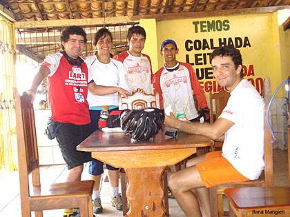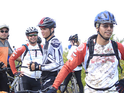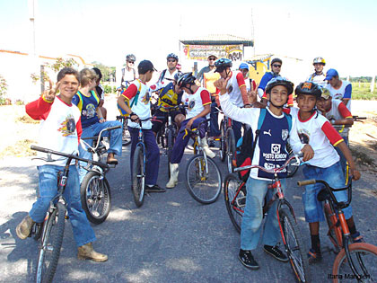 A concentração estava animada com os garotos da região ansiosos para receberem seus presentes, que foram doados pelo grupo para incentivá-los na prática do Mountain Bike, com segurança. Vários capacetes e luvas foram distribuídos entre eles que iriam nos acompanhar por cerca de 55 km. Suas bikes não eram apropriadas para o Mountain Bike. Eram pequenas, sem marchas e até sem freios, mas a alegria deles era tão grande que esses “detalhes” não fizeram a menor diferença para eles. Nós, o grupo, sim, para eles, parecíamos uns ET’s …. rsrsrs.
