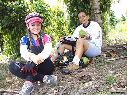 O que compensava eram os laranjais onde parávamos para chupar laranjas no pé fresquinhas e água de côco que a garotada arrancava dos coqueirinhos, quebravam-os nos eixos das rodas de suas bikes e os dividiam conosco para matar a sede.