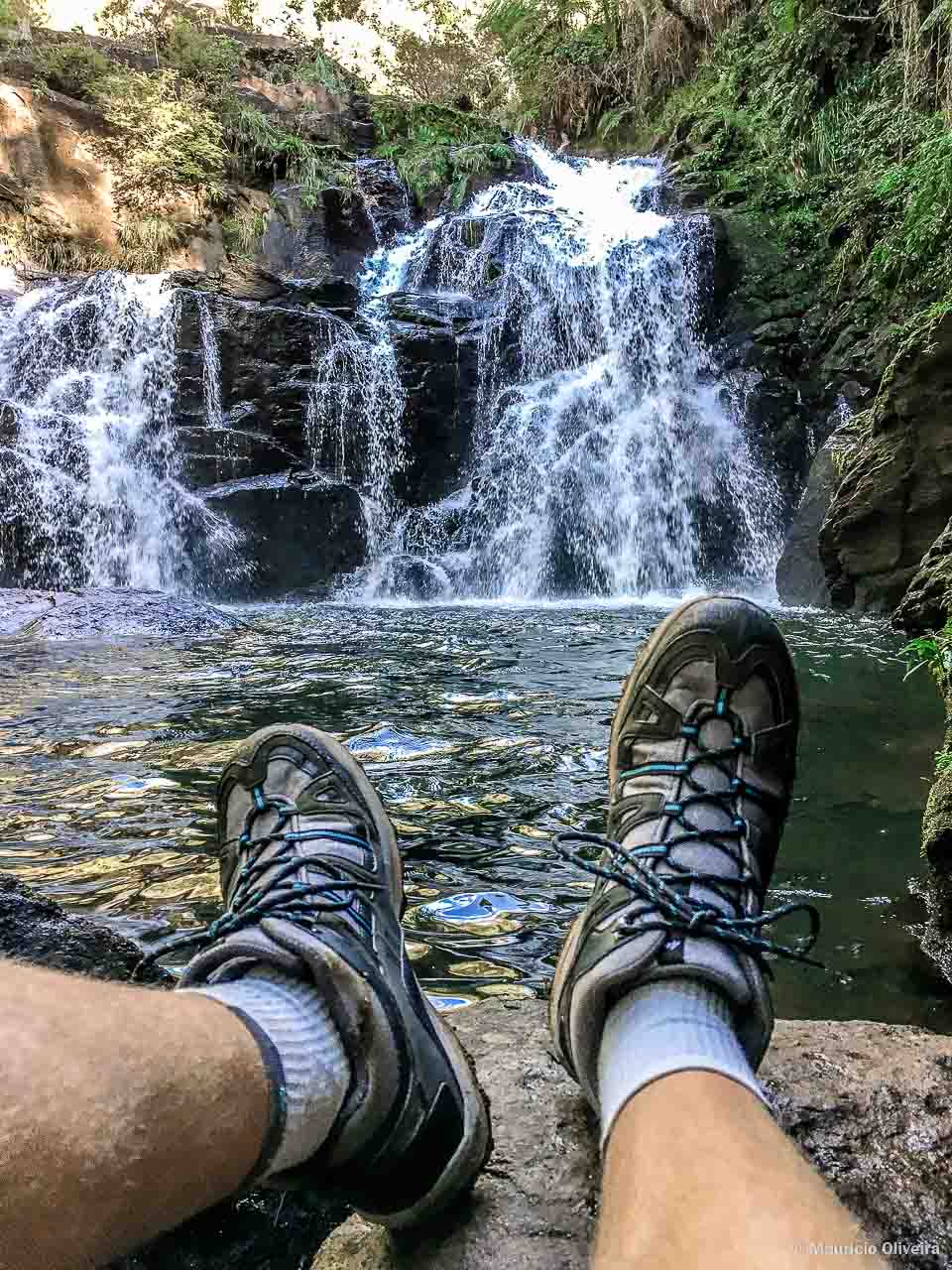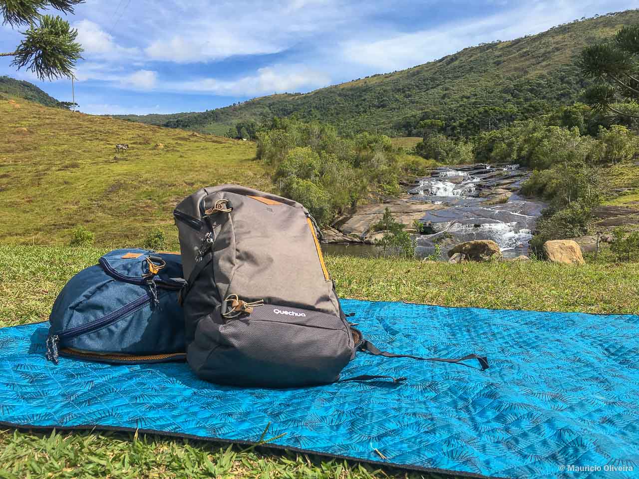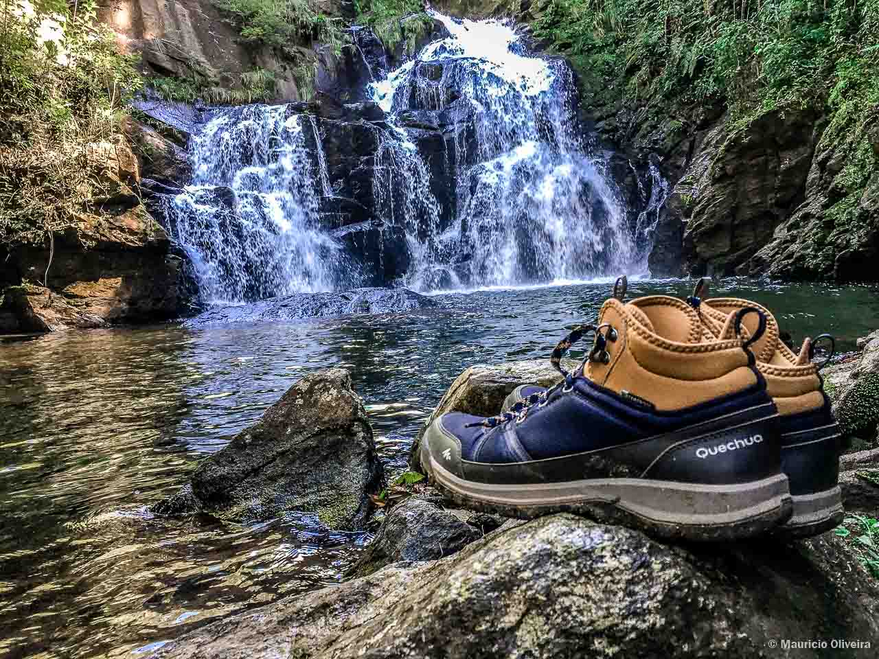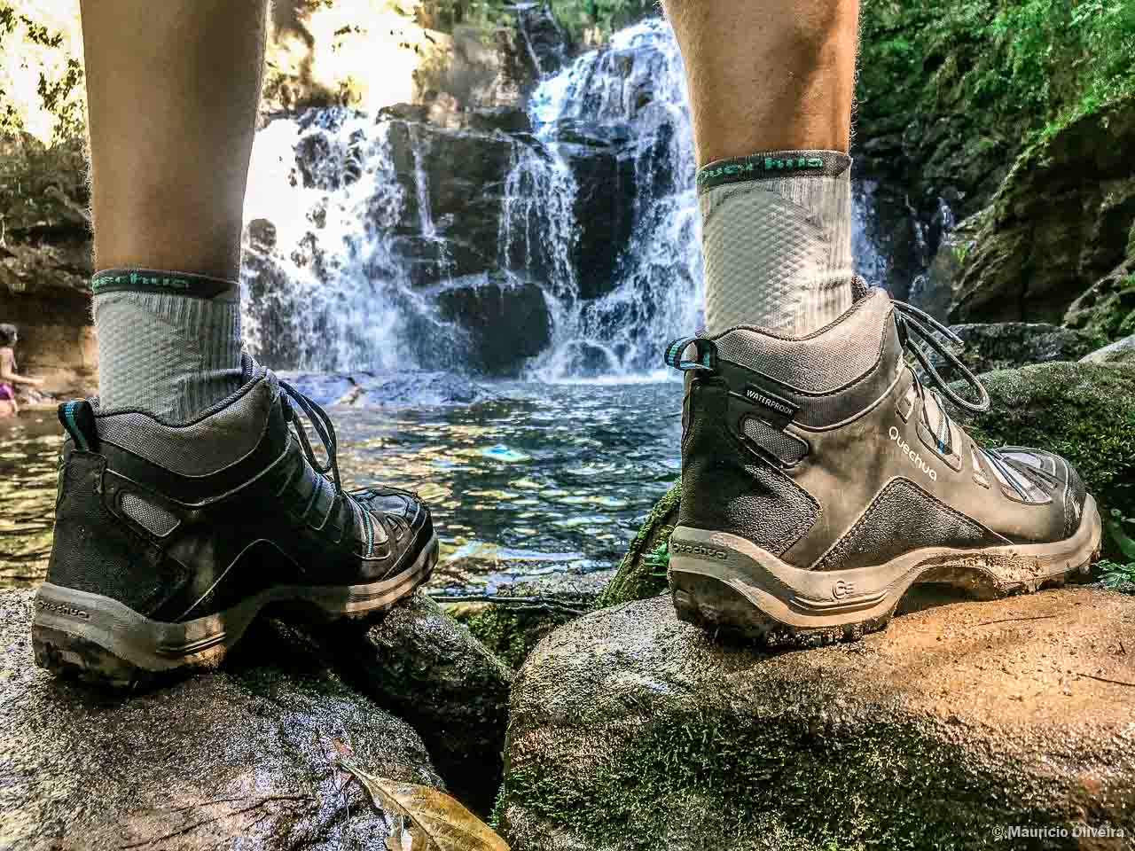 – Calçados e meias: não esqueça da bota e do chinelo. Durante o dia faça as trilhas de bota para se proteger. O chinelo é bastante útil na hora do banho no camping e também em algumas cachoeiras com pedras.
