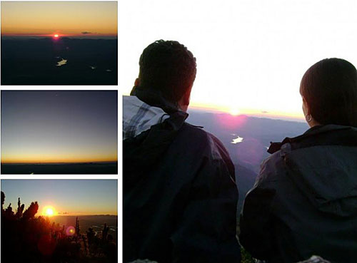 Voltamos a dormir e por volta de 6h00 da manhã lá estávamos nós, enfrentando o frio fora da barraca esperando o nascer do sol. Não perderíamos aquele espetáculo por nada, pois é simplesmente perfeito. A nossa volta as montanhas começam a ser desvendadas devagar e cercadas por nuvens branquinhas, como se vestissem cada formação com cuidado a espera do momento especial.