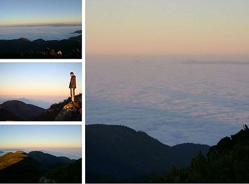 Um pouquinho mais de caminhada com a Lisiane me perguntando algumas vezes: “já chegou?” (rsrs),… e lá estávamos nós, fora da mata e cercados por caratuvas a poucos metros do ponto mais alto da montanha. A subida é um pouco desgastante, mas a vista impressiona e faz com que o cansaço seja deixado em segundo plano.