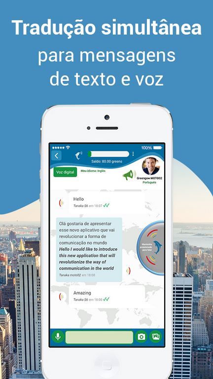 Por conta da tecnologia de rádio comunicação conhecida como Push-to-talk, desenvolvida pela startup brasileira Greengow Tecnology Inc, o usuário tem suas mensagens e ligações traduzidas em tempo real, tudo dentro do aplicativo. Através do aplicativo, dois amigos, um francês e um chinês, por exemplo, podem falar direto de seus países com um amigo brasileiro, cada um no seu idioma nativo, mantendo a originalidade da conversa”, conta Carlos Tanaka, diretor da startup.