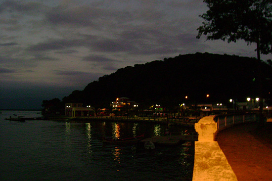 Depois da casa de campo montada (barraca), era hora de decidirmos o que fazer. Como já era próximo de 13h o assunto girava entre dormirmos um pouco para descansar ou sairmos para almoçar. Depois de enrolarmos bastante, a fome nos venceu e saímos em busca de comida e como somos muito preguiçosos, já pensávamos na volta e no sono gostoso da tarde. Voltamos do almoço nos programando para assistir o pôr do sol na baia de Guaraqueçaba, pois dizem que é algo maravilhoso. Programamos nosso chimarrão, deixamos tudo já pensado para o final da tarde, mas… Quem disse que acordamos?? Quando levantamos o sol já estava quase escondido e só nos restou a tranquilidade da pracinha no centro da cidade, tomando o chimarrão e observando os golfinhos brincarem a nossa frente. Perdemos nosso pôr do sol, mas vocês podem ter a certeza que vale a pena acompanhar o anoitecer na baia, na companhia dos golfinhos. É uma paz que contagia e ali ficamos por mais algum tempo.