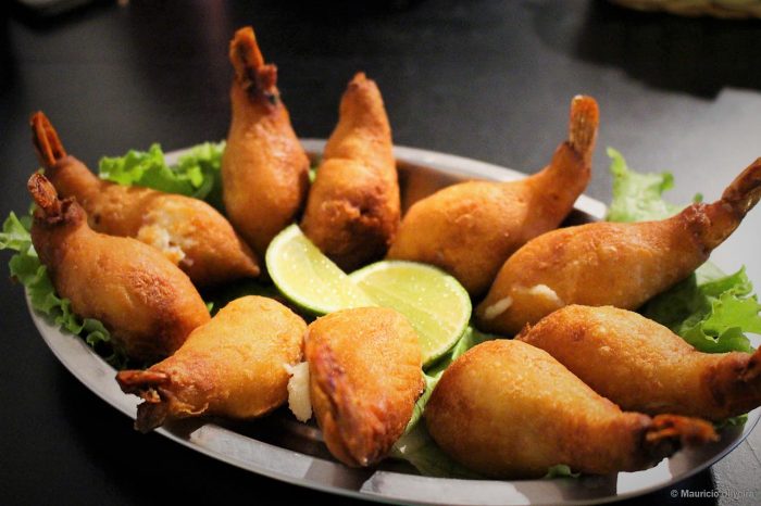 Porém não se restringe somente a esses, oferecendo também pratos de carne e de peixe, com opções de frito, grelhado, com molho de manga, dentre outros. Um prato mais apetitoso que o outro. Sem esquecer das ótimas entradas. Comemos os famosos Bolinhos de Bacalhau (delicioso, experimente!), também tem outras opções, feitas em grande maioria, de camarão e bacalhau. Que formam uma lista de 11 entradas diferentes.
