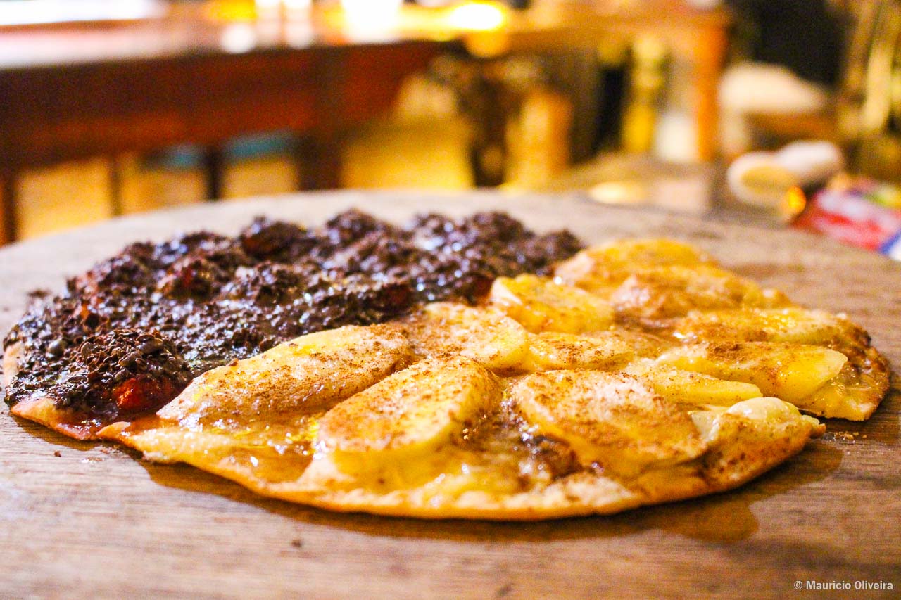 A nossa experiência no restaurante foi ótima. Pedimos Brusquetas de entrada que estavam deliciosas. O manjericão fresco parecia ter sido colhido na hora. O prato principal não podia ser outro. Comemos uma pizza de dois sabores: Tomate Seco com Rúcula e Portuguesa. Feita com massa fina artesanal que possui um gosto único. De sobremesa não deixamos passar a Pizza de Canela com Banana e Chocolate com Morango. Deu água na boca só de pensar nelas.