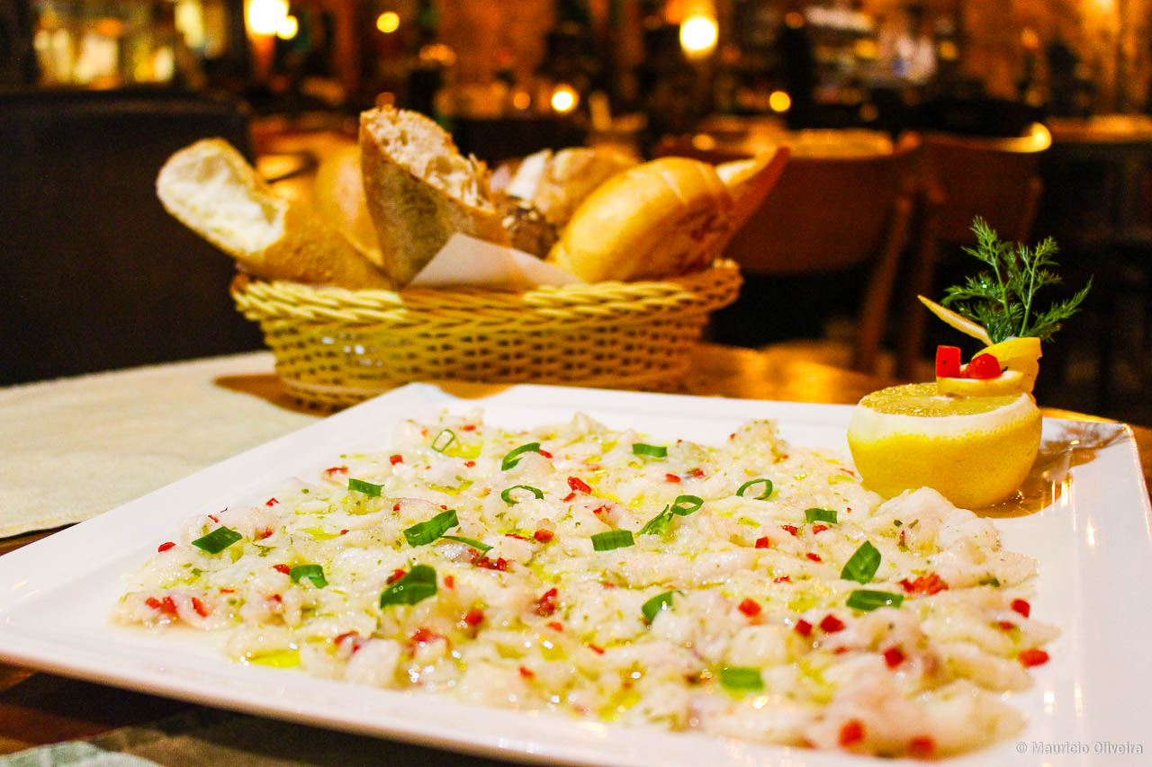 Fomos muito bem atendidos pelos profissionais da casa, e de entrada nós comemos um ótimo Ceviche feito com peixes frescos, que veio acompanhado por uma cesta de pães que são produzidos pelo Margarida Pães, que faz parte do restaurante. Estavam deliciosos e crocantes. O segredo é o mix de farinhas especiais e receitas próprias.