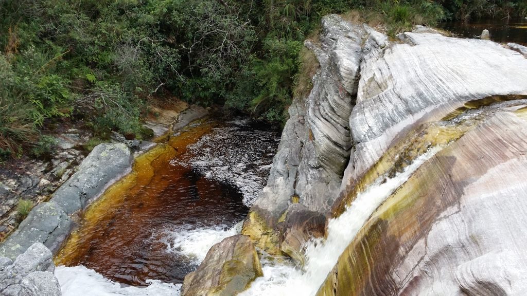 Na trilha a pé (1,4 km), caminhamos ao longo do rio, por algumas vezes em trilhas fechadas pela mata, subindo e descendo pedras, lado a lado a cachoeiras e riachos. O visual vale a pena mesmo não se tendo uma visão ampla da cachoeira Janela do Céu vista de baixo. O percurso é fácil e levamos aproximadamente 40min e o melhor: não havia mosquitos lá. Para quem deseja fazer esta mesma trilha, basta acessar este link do Wikiloc: