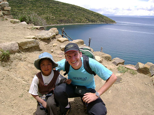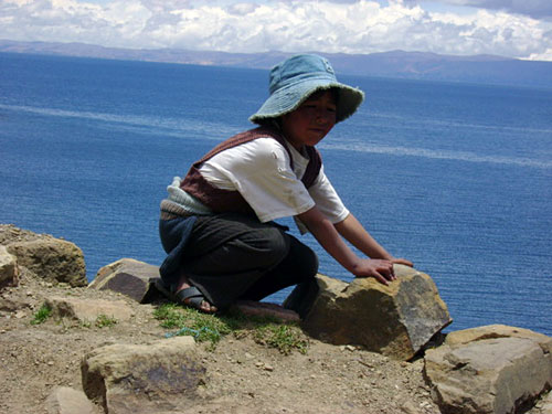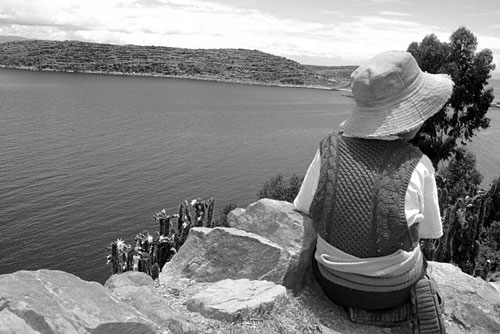 Por lá encontrei uma senhora que disponibilizava o banheiro de sua casa para atender aos turistas, essa parte era do lado de fora. Na saída, paguei e iniciei uma conversa sobre a Ilha com ela. Nesse momento, se aproximou um jovem e perguntou se eu era do Brasil, fiquei um pouco assustado devido à forma como ele abordou. Mas acabei afirmando e perguntei se ele conhecia ou gostaria de conhecer o Brasil… Pronto! Falar com Bolivianos ou até Peruanos e dizer que se mora no Brasil, são motivos suficientes para fazê-los sorrirem ou ficarem felizes. Algumas coisas são evidentes na imaginação daquele povo: a primeira é o Ronaldinho e a segunda o Rio de Janeiro.