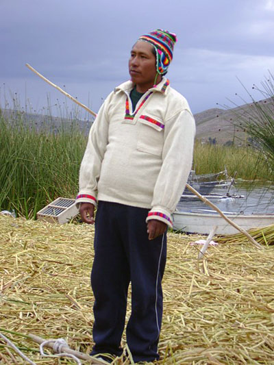 É incrível ver aquelas ilhas, imagina-se que são de “totóras” feitas e que flutuam sobre as águas do Lago Titicaca. Além disso, vivem muitas famílias por lá, o frio é intenso e a umidade no ar e muito grande. Até gostaríamos de realizar uma grande experiência, pernoitar na Ilha. Mas devido a nossa programação de datas isso não foi possível. Na ilha a modernidade está a todo vapor, ele possui energia, restaurantes, telefone público e até correios. Claro, você compra um postal, escreve uma mensagem e dentro de quatro dias estará na mão do destinatário, ou seja, antes de voltar de viagem, a pessoa que você tanto admira já estará com o postal em mãos. Agora o mais importante é saber que nos próximos três anos os Uros também terão acesso à internet.