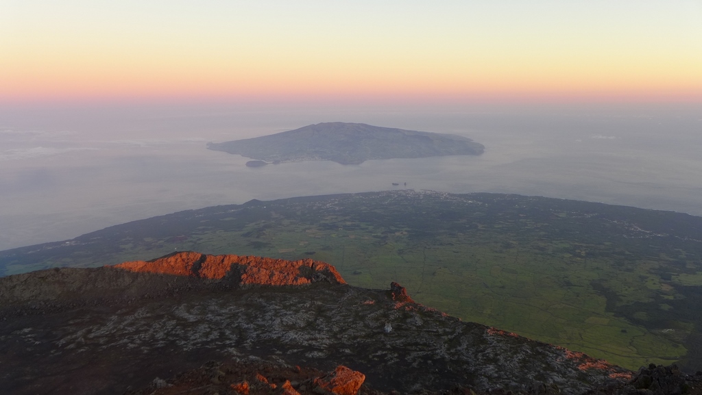 Amanhecer no topo do Piquinho, com vista da Ilha do Faial