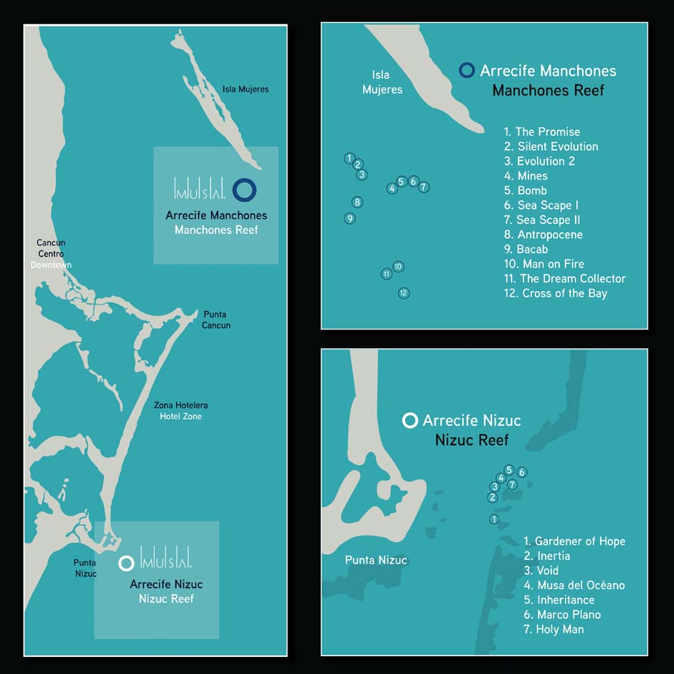 O Cancun-Isla Mujeres Marine Park é um dos trechos de mar mais visitados do mundo, com mais de 750.000 visitantes a cada ano, colocando imensa pressão sobre os seus recursos. A localização das esculturas promove a recuperação dos recifes naturais, pois alivia a pressão sobre eles atraindo os visitantes para um local alternativo.