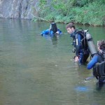 Em poucos momentos lembramos de comer, mas o que não nos deixava em paz era a vontade de fazer “xixi”. Imagina você com vontade e escutando a todo momento o barulho de água. Era difícil agüentar. Não deu outra, quando estávamos a quase 07 horas na caverna, não agüentei mais e tive que me render às necessidades fisiológicas. Me neguei a tirar o neoprene naquele frio congelante. Não deu outra. Desculpe ter que dizer isso, mas alem de aliviar a bexiga, aqueci parte do meu corpo. Eh, toda aventura tem seus problemas.
