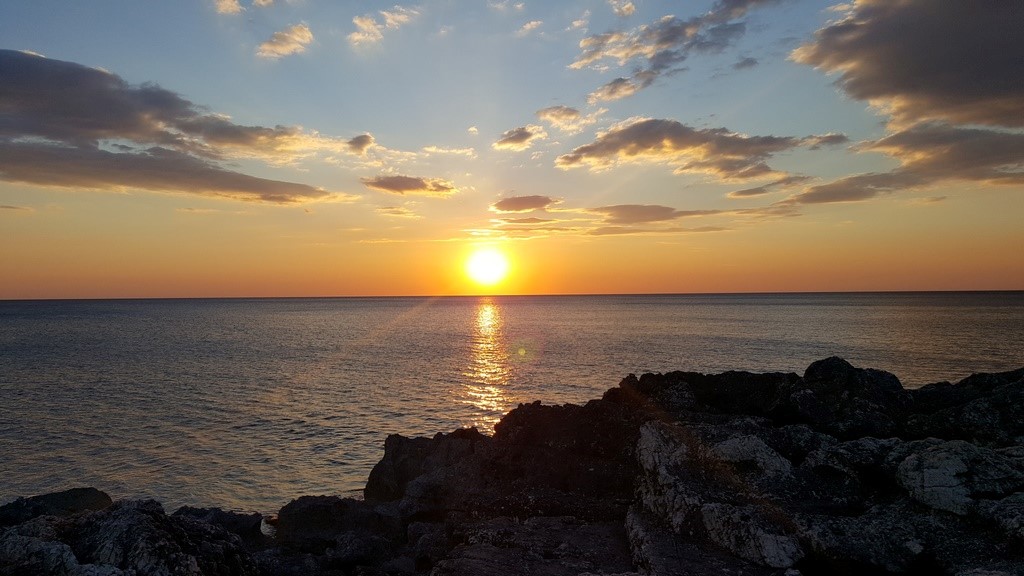 Terminamos esse segundo dia com um pôr do sol na Praia Alaties, que me arrisco a dizer que foi o que eu mais gostei na viagem, sim, mais que o de Santorini! Então a principal dica de Kefalonia é essa, não perca o pôr do sol nessa praia! Lá tem um restaurante, o Acqua Alaties Beach, onde as pessoas fazem reserva para assistir ao pôr do sol. Não tínhamos reserva e mesmo assim conseguimos uma mesa (pois não era alta temporada ainda), mas acabamos só tomando um café e descemos para assistir ao pôr do sol da praia mesmo. O café por sinal foi muito gostoso, a caneca era recheada com nutella, um espetáculo!
