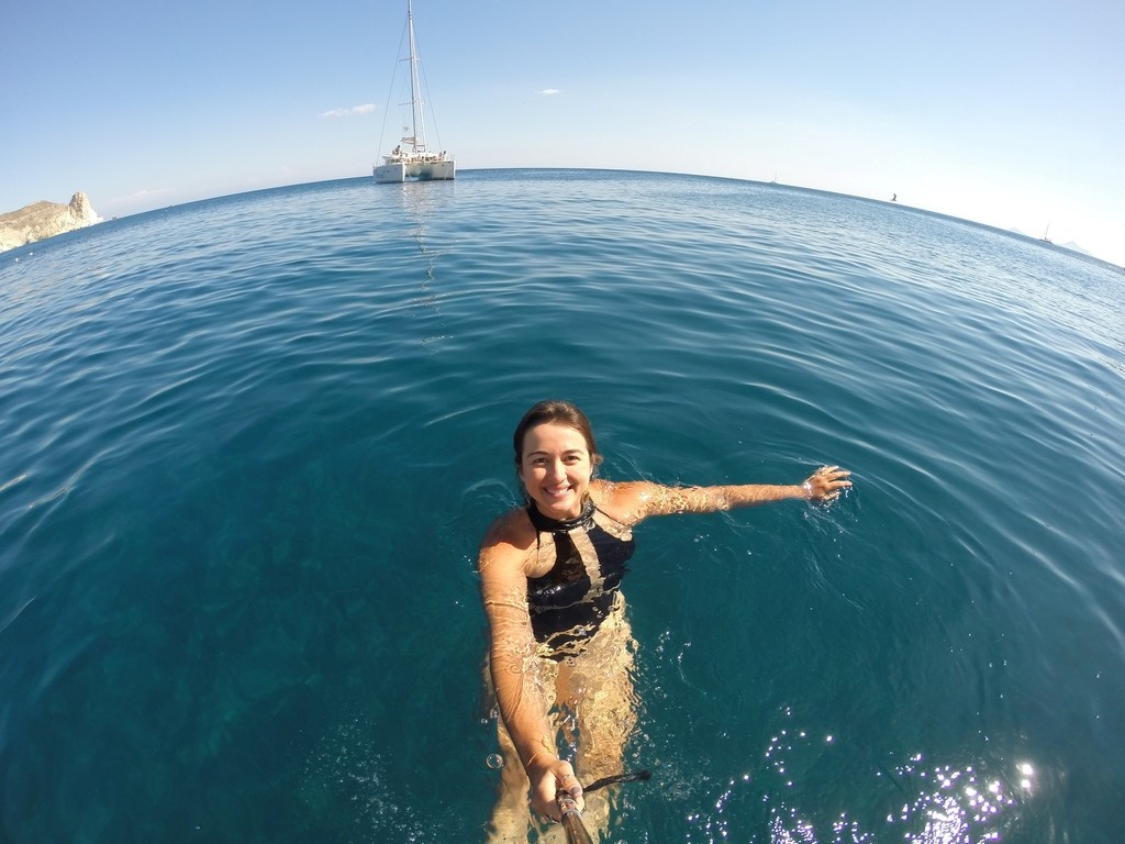 O passeio dura aproximadamente 5h, parando para mergulho na Red Beach, White Beach e por último nas águas vulcânicas, próximo à caldeira. Foi uma experiência única mergulhar por lá. Tínhamos lido na internet que era bom usar um biquíni antigo, pois a água vulcânica é rica em enxofre, o que poderia manchar as roupas, mas não aconteceu nada! O mergulho foi ótimo e meu maiô lindo e novo saiu sem manchas! O passeio contou ainda com um delicioso almoço todo preparado em alto mar, com uma comida maravilhosa e bebidas a vontade.
