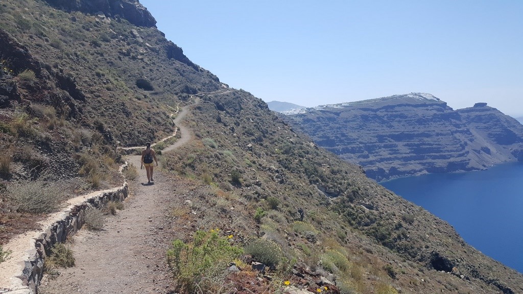 Nós fizemos MUITAS paradas para fotos e algumas paradas para descansar e beber água, então, levamos um pouco mais de 3 horas até chegar a Fira. No caminho passamos também pelas cidades de Imerovigli e Firostefani, aproveitando para conhecê-las.