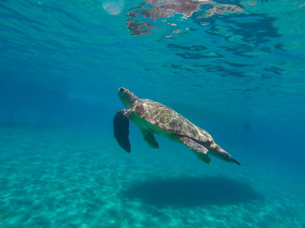 No dia seguinte bem cedo, pegamos o carro e fomos até a Praia de Laganas, caminhamos por toda sua extensão, até a Cameo Island, uma ilha que fica ligada a praia de Laganas por uma ponte, onde acontecem festas na alta temporada. A entrada da ilha estava fechada, então tiramos algumas fotos e pegamos um passeio de barco que nos deixaria na Marathonisi Island e na volta passaria para conhecermos as Keri Caves. No caminho, vimos várias tartarugas enormes, foi lindo!