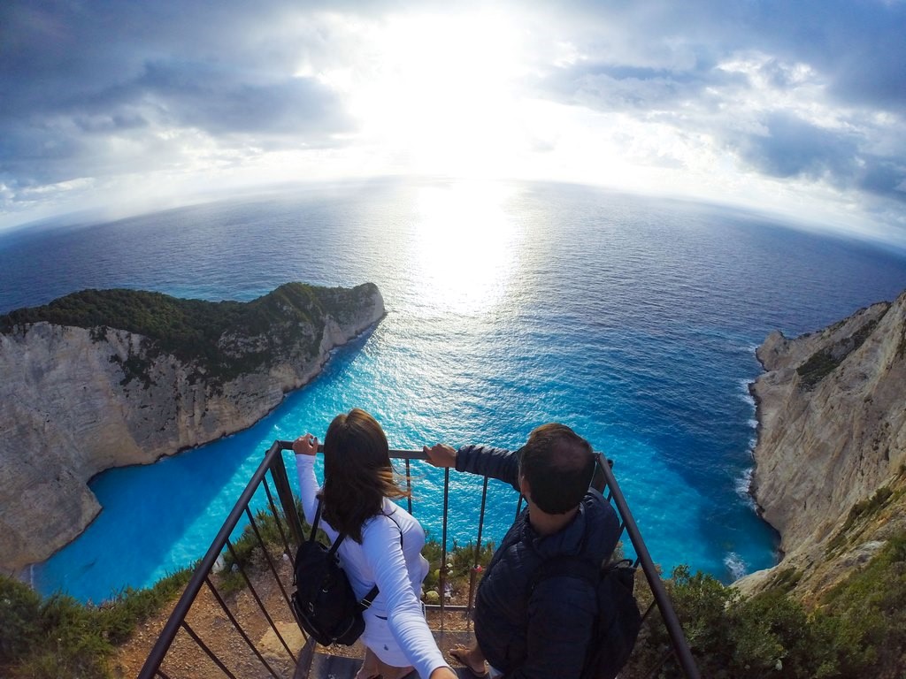 Outra dica legal é assistir o pôr do sol no porto Limnionas, que dizem ser muito bonito. Mas como nesse segundo dia, o tempo não estava muito aberto no fim do dia, resolvi não ir até o Limnionas e visitar novamente o mirante da Navagio, porque eu me apaixonei por aquele lugar! Foi a melhor coisa que eu fiz, pois pegamos um tempo nublado lá em cima e mesmo sem sol, a água conseguiu ser ainda mais azul, como pode isso? Inesquecível! Adorei ter visto com e sem sol.