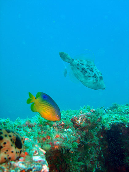 A vida marinha é muito comum em todos os pontos de mergulho ao redor da Ilha toda. Certamente você irá encontrar Frades, Maria da Toca, peixes Borboleta, Trombetas, peixe Cofre, ainda com sorte Tartarugas Verde e Golfinhos.