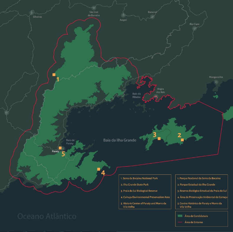 A candidatura de Paraty e Ilha Grande é fruto de parceria entre o Ministério do Meio Ambiente, Iphan, Instituto Chico Mendes de Conservação da Biodiversidade (ICMBio), Prefeituras Municipais de Paraty, de Angra dos Reis e Instituto Estadual do Ambiente (Inea). Junto ao Instituto Estadual do Patrimônio Cultural (Inepac), Instituto Histórico e Artístico de Paraty (IHAP), Fórum das Comunidades Tradicionais e Observatório de Territórios Sustentáveis e Saudáveis da Bocaina, os órgãos responsáveis estão construindo, em conjunto, um plano de gestão compartilhada do sítio.