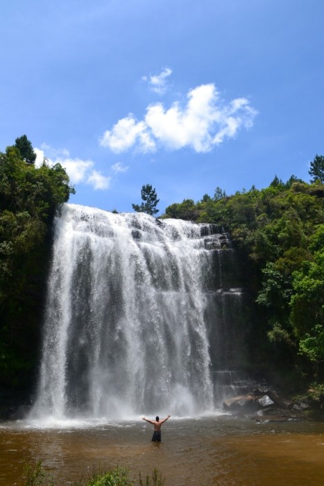 Retornando à estrada principal (Av. Peri Pereira da Costa – PR-513), seguimos a direita em direção à Cachoeira da Mariquinha (mais cerca de 13 km a partir da retomada na Avenida), observando as placas e não tivemos problemas. Próxima a entrada há uma cerca onde é possível estacionar o veículo e onde é cobrada uma taxa de entrada de R$5 por pessoa para passar o dia ou R$12. O horário de funcionamento é de 8h as 20h. A partir do estacionamento há um trilha leve e bem sinalizada de cerca de 1km até a cachoeira, onde o visual é incrível.