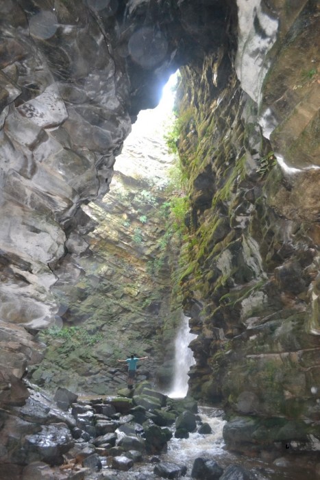 Posteriormente, fomos ao Cânion e Rio São Jorge em Ponta Grossa. Na procura pela internet não imaginei que este lugar fosse tão incrível. Localizado a 15 km do centro de Ponta Grossa, nem 30 minutos de carro. No google maps procurar por “Rio São Jorge”. Para ter acesso ao local é preciso pegar a Estrada Alagados, uma estradinha de terra, a partir da Rua Arichernes Carlos Globo. Neste local, é possível conhecer belíssimas cachoeiras, uma delas que possui um canhão d’água de cerca de 30 m de altura e fazer pequenas trilhas. Na entrada é cobrado R$ 10 reais por pessoa. Há restaurante (refeições por encomenda), sanitários, estacionamento, área para camping. Para os mais aventureiros, é possível fazer o Rapel no local desde que agendado com antecedência com uma empresa especializada. O contato que conseguimos para prática de rapel por lá foi: www.facebook.com/outsideraventuras