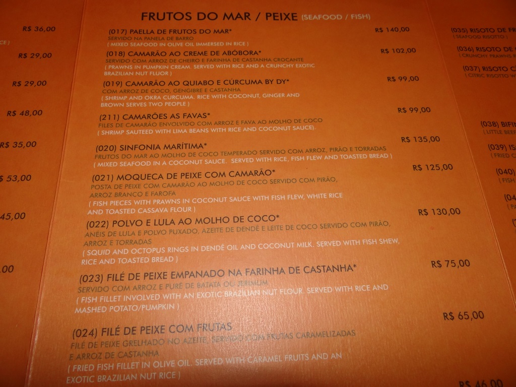 »Restaurante Mergulhão: R$ 205. O valor inclui uma entrada, um prato principal dividido para duas pessoas, uma cerveja e um refrigerante.