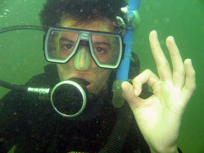 Após (check-out) “1º mergulho” em águas abertas, com 100% de aproveitamento recebi uma credencial internacional de mergulhador, que me dá a possibilidade de mergulhar em qualquer lugar do mundo.